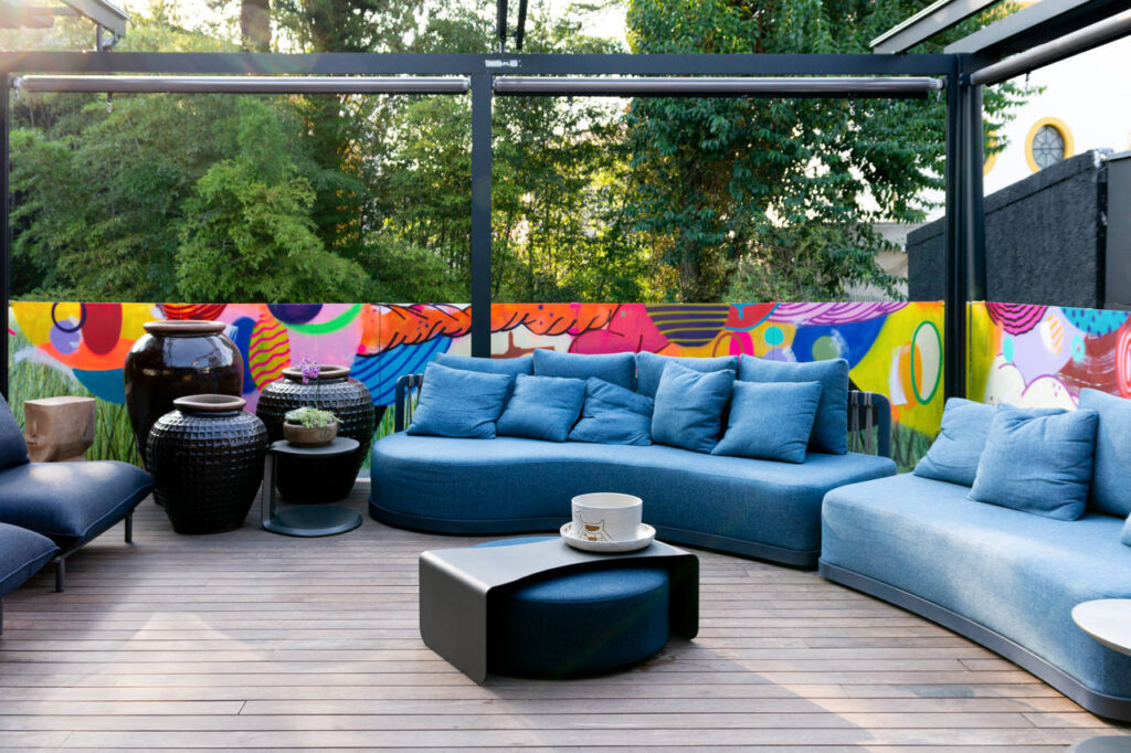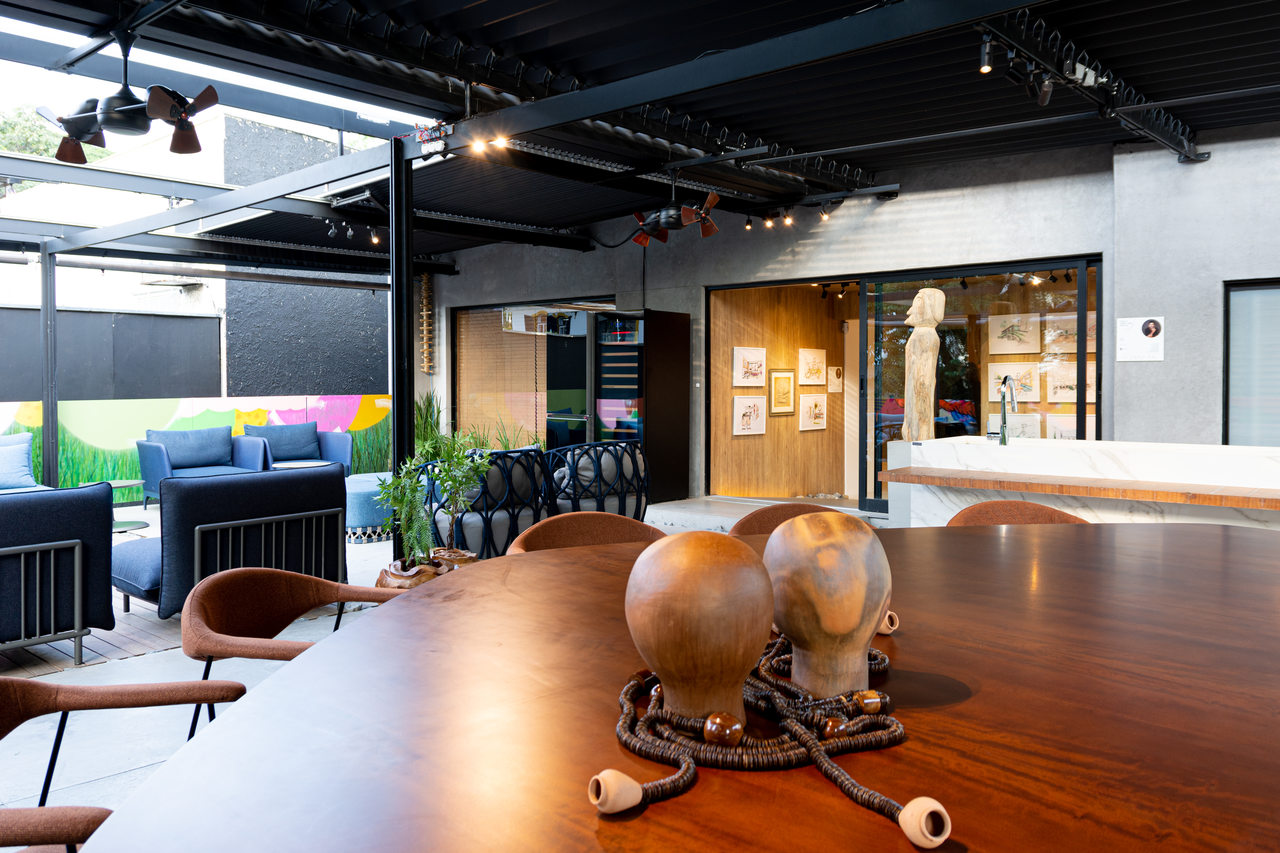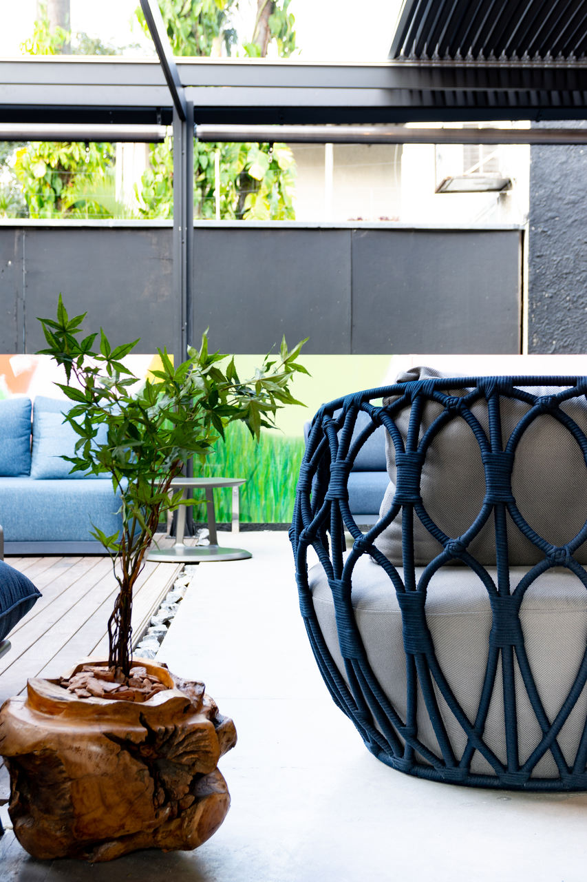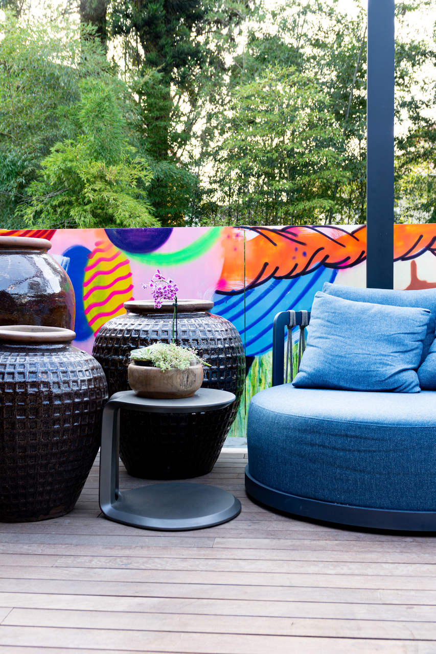 Para celebrar e receber, o espaço projetado por Wesley Lemos traz o vinho e o vinil como inspirações. O design brasileiro é protagonista no rooftop, com acabamentos e texturas escolhidas para proporcionar conforto, e tons terrosos misturados ao verde e azul. Um ambiente descontraído e sofisticado para apreciadores de vinho e diversão.